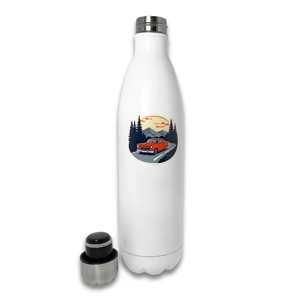 Motoryzacyjna grafika nadaje butelce charakteru i wyróżnia ją na tle klasycznych modeli. Zastosowana technologia UV-DTF zapewnia wysoką trwałość i precyzję detali.