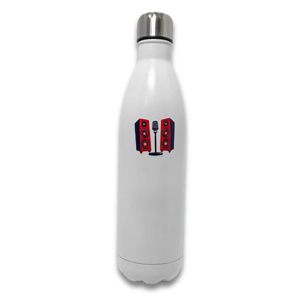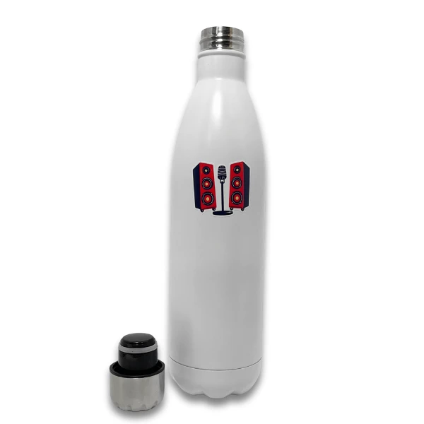 Biała wersja butelki podkreśla nowoczesny styl i dobrze eksponuje nadruk. To kolor, który pasuje do różnych przestrzeni — od biurka po studio muzyczne.