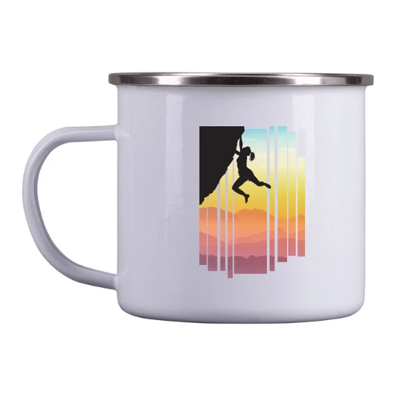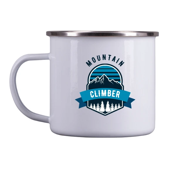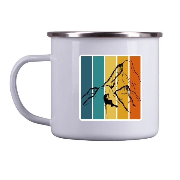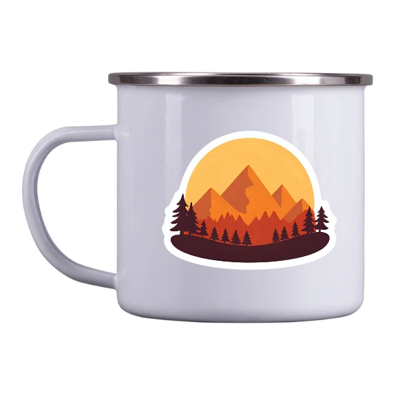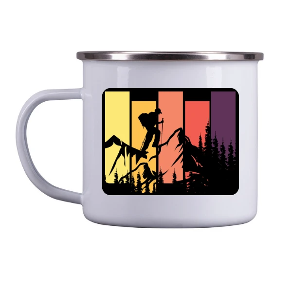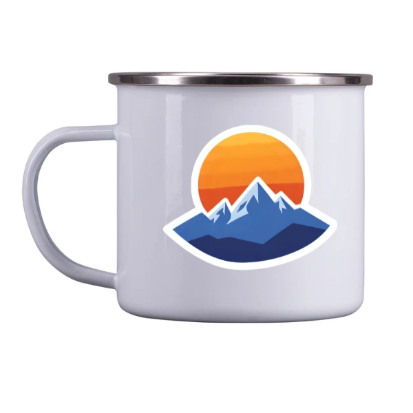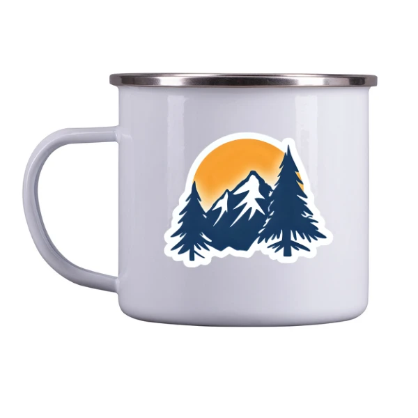 Kubek emaliowany z nadrukiem górskim – styl retro dla miłośników gór