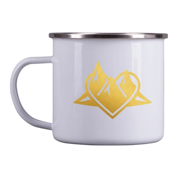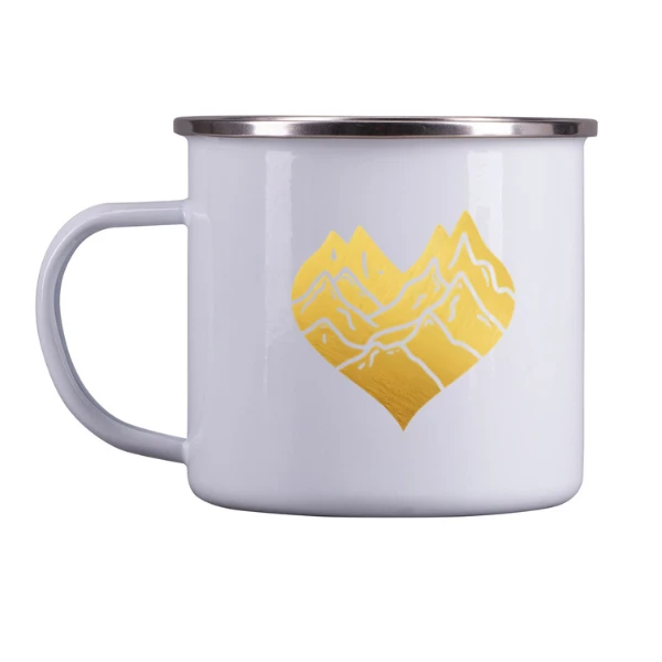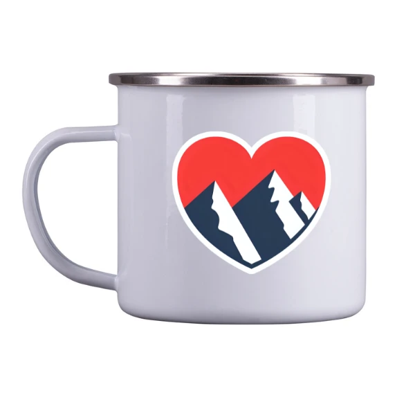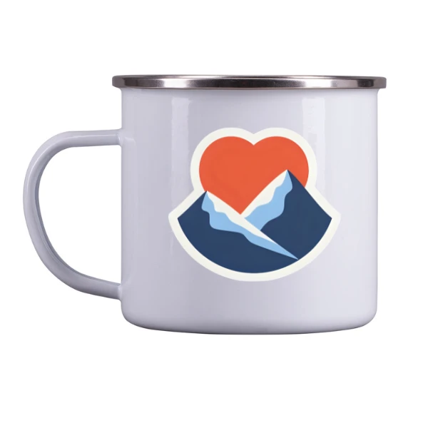 Motyw graficzny przedstawiający górskie krajobrazy, zachodzące słońce oraz symboliczne serce z linią gór, to subtelne nawiązanie do wolności, przygody i miłości do natury. Minimalistyczna grafika w stylu retro doskonale komponuje się z klasycznym białym kolorem emalii.