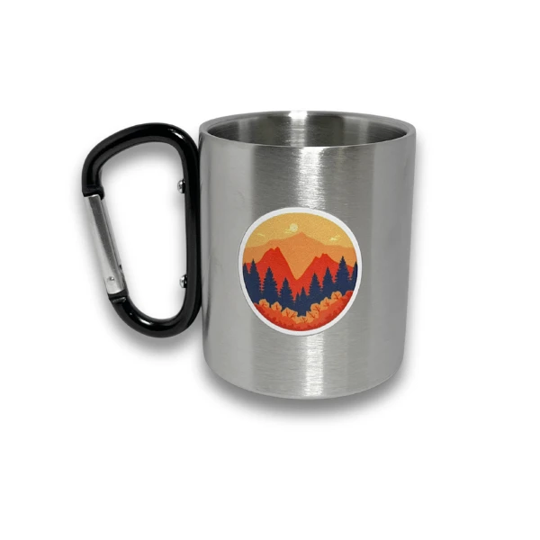 Kubek metalowy z karabińczykiem 220 ml – kubek z nadrukiem górskim