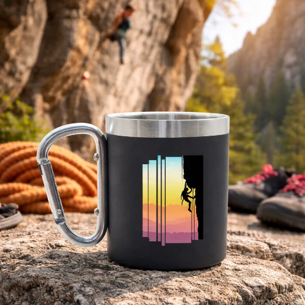Kubek stalowy z karabińczykiem - kubek górski dla fana wspinaczki