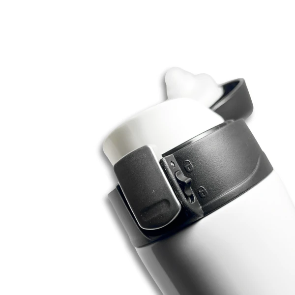 Szczelne zamknięcie z przyciskiem umożliwia wygodne otwieranie jedną ręką, co sprawdza się w podróży, samochodzie oraz podczas aktywnego dnia.
