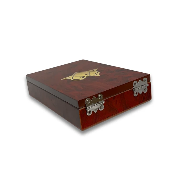 Zestaw zamknięty jest w brązowym etui, które nadaje mu klasycznego charakteru. Taka kolorystyka dobrze kojarzy się z elegancją i ponadczasowym stylem, dlatego świetnie wpisuje się w prezentową estetykę.